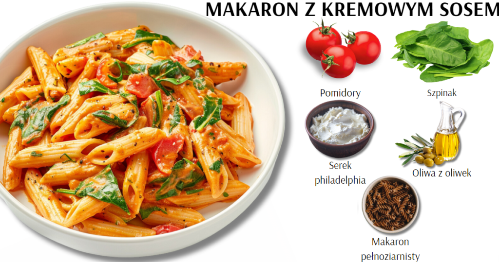 Szukasz pomysłu na pożywną i szybką przekąskę do pracy? Wypróbuj nasz przepis na makaron z kremowym sosem pomidorowo-szpinakowym – idealny, aby dodać energii w ciągu dnia i cieszyć się pysznym smakiem.