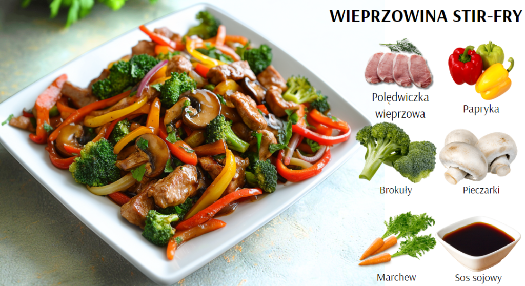 Wieprzowina stir-fry to szybkie i pyszne danie, które łączy w sobie soczyste kawałki mięsa z chrupiącymi warzywami w aromatycznym sosie. Idealne na obiad lub kolację, gdy potrzebujesz czegoś smacznego i sycącego w zaledwie kilka minut.