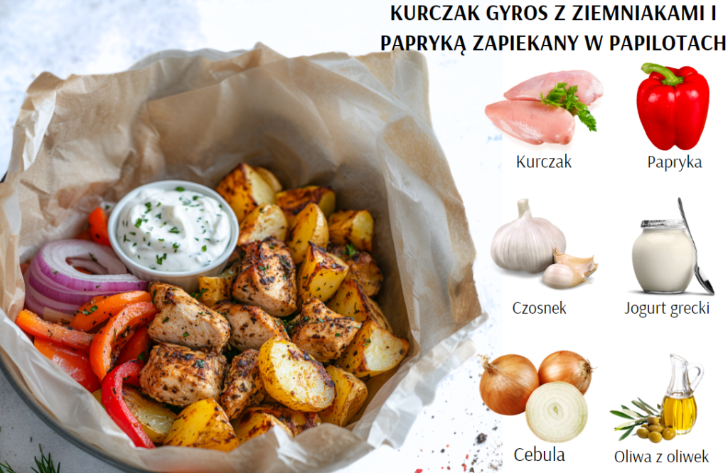 9.Kurczak gyros z ziemniakami i papryką zapiekany w papilotach