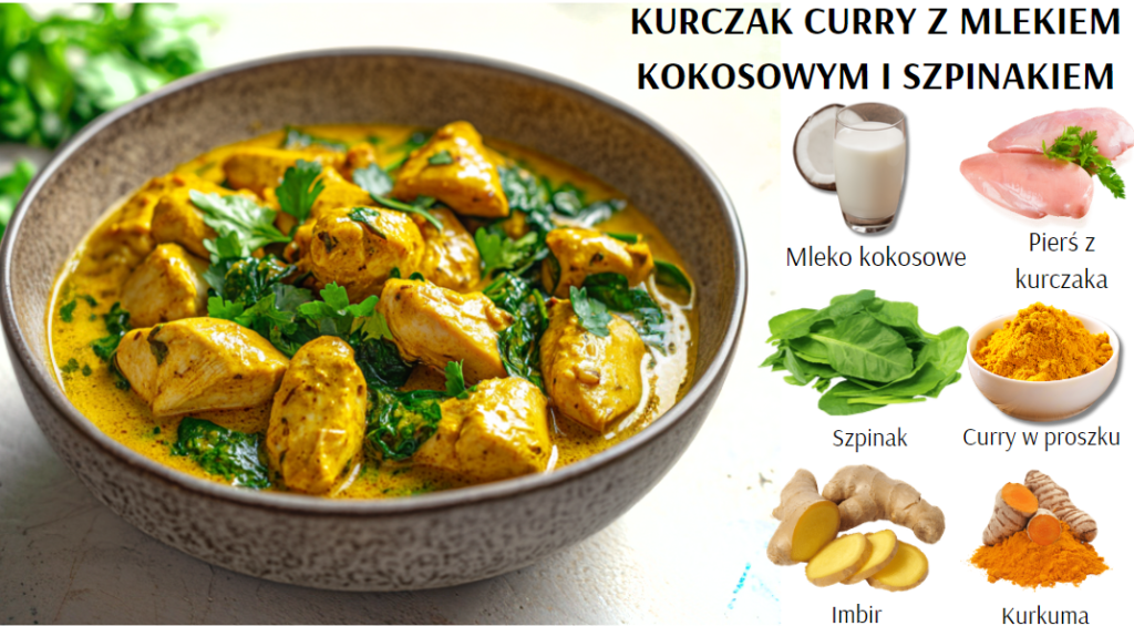 1.Kurczak Curry z Mlekiem Kokosowym i Szpinakiem