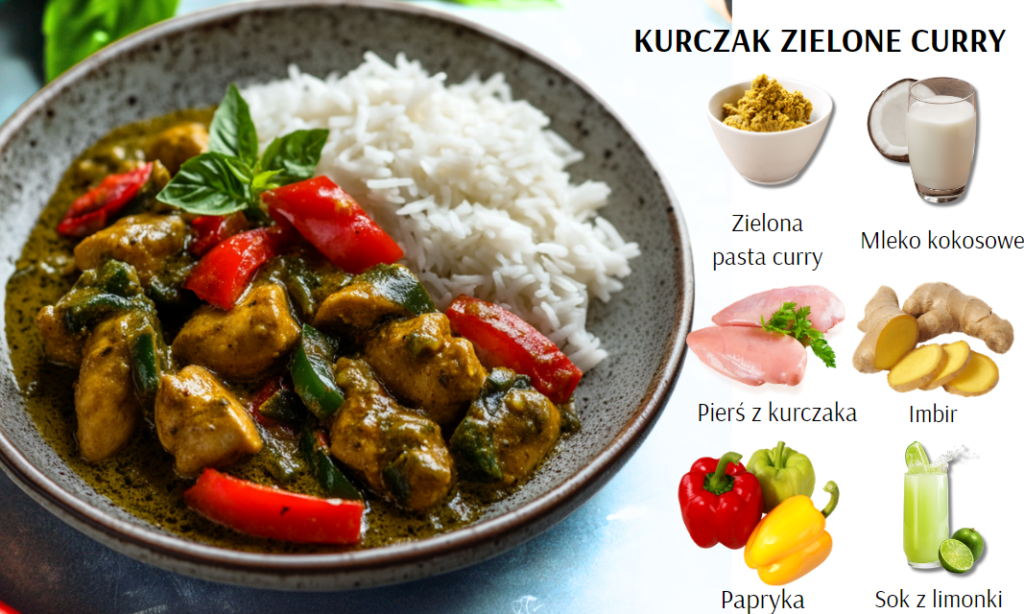 Kurczak Curry Zielone to wyraziste danie inspirowane kuchnią tajską, które łączy aromatyczną zieloną pastę curry z delikatnym kurczakiem i kremowym mlekiem kokosowym. Ten przepis zachwyci cię intensywnym smakiem i świeżością składników, tworząc idealną harmonię na talerzu.