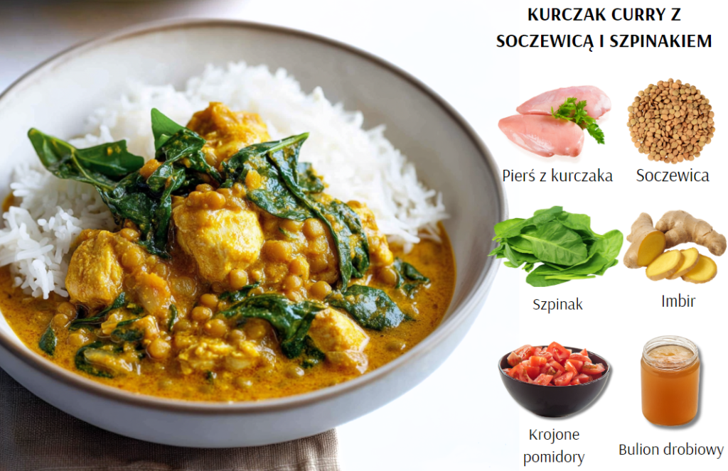 7.Kurczak Curry z Soczewicą i Szpinakiem