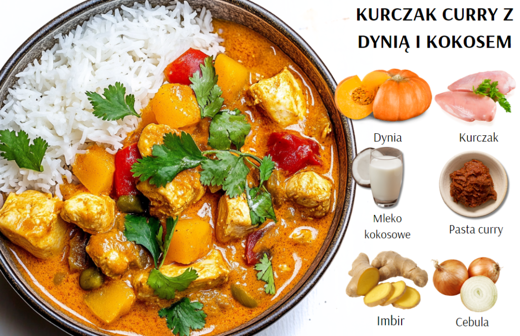 Kurczak Curry z Dynią i Kokosem to wyjątkowe połączenie słodyczy dyni z kremowym mlekiem kokosowym i aromatycznym curry. Ten przepis wprowadza do twojej kuchni jesienne smaki w egzotycznej odsłonie, tworząc danie pełne ciepła i harmonii.