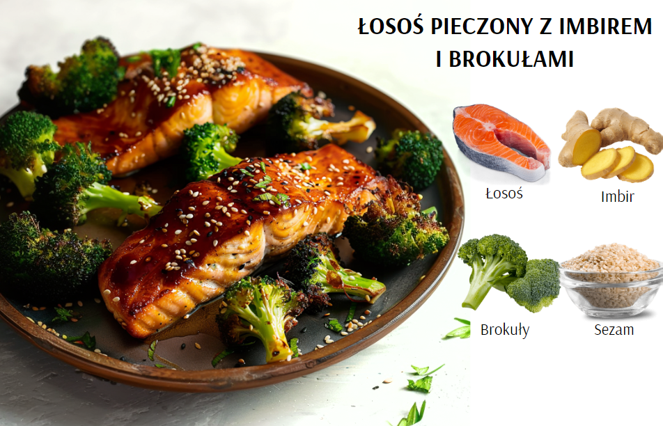 5.Łosoś pieczony z imbirem i brokułami