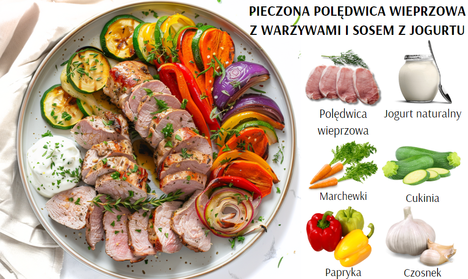 Pieczona polędwica wieprzowa z warzywami i sosem z jogurtu to wyśmienite danie, które łączy soczyste mięso z delikatnością pieczonych warzyw. Dodatek orzeźwiającego sosu jogurtowego sprawia, że całość staje się lekka i wyjątkowo smaczna, idealna na rodzinny obiad.