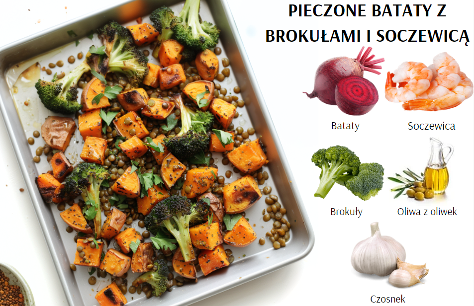 Pieczone bataty z brokułami i soczewicą to sycące i zdrowe danie, które zachwyci Cię bogactwem smaków i wartości odżywczych. Proste w przygotowaniu, łączy w sobie słodycz batatów, chrupkość brokułów i delikatność soczewicy, tworząc idealną propozycję na wegetariański obiad lub kolację.