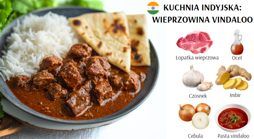 Wieprzowina Vindaloo to klasyczne danie kuchni indyjskiej, które zachwyca intensywnością smaków i aromatów. Pikantna, pełna przypraw potrawa przeniesie Cię w serce Indii, oferując niezapomniane doznania kulinarne.