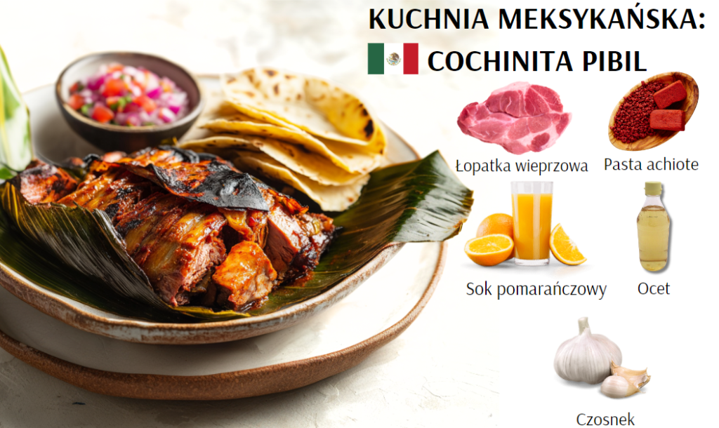Cochinita Pibil to ikona kuchni meksykańskiej, której korzenie sięgają tradycji Majów. Soczysta, długo pieczona wieprzowina marynowana w soku z pomarańczy i achiote, owinięta w liście bananowca, zachwyca wyjątkowym smakiem i aromatem rodem z Jukatanu.