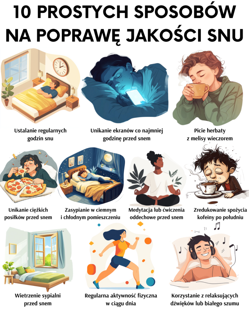 Lepsza jakość snu to nie tylko kwestia komfortu, ale również zdrowia fizycznego i psychicznego. Poprawiając nawyki związane z nocnym odpoczynkiem, możesz znacząco wpłynąć na swoje samopoczucie i wydajność. Zadbaj o swoje otoczenie, regularność i relaks, a Twój sen stanie się bardziej regenerujący i satysfakcjonujący.