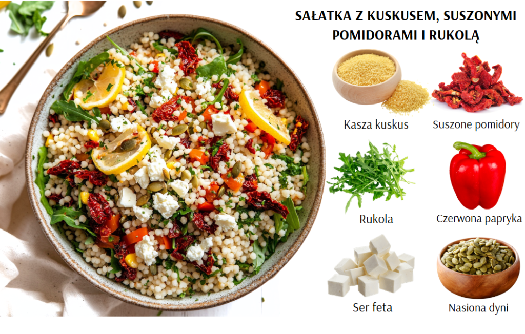 1.Sałatka z Kuskusem, Suszonymi Pomidorami i Rukolą