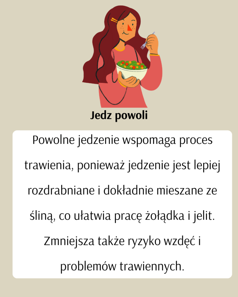 Jedzenie w pośpiechu obciąża układ trawienny, podczas gdy powolne przeżuwanie pozwala na lepsze rozdrobnienie pokarmu i mieszanie go ze śliną. To kluczowy krok, który ułatwia trawienie i zmniejsza ryzyko wzdęć.