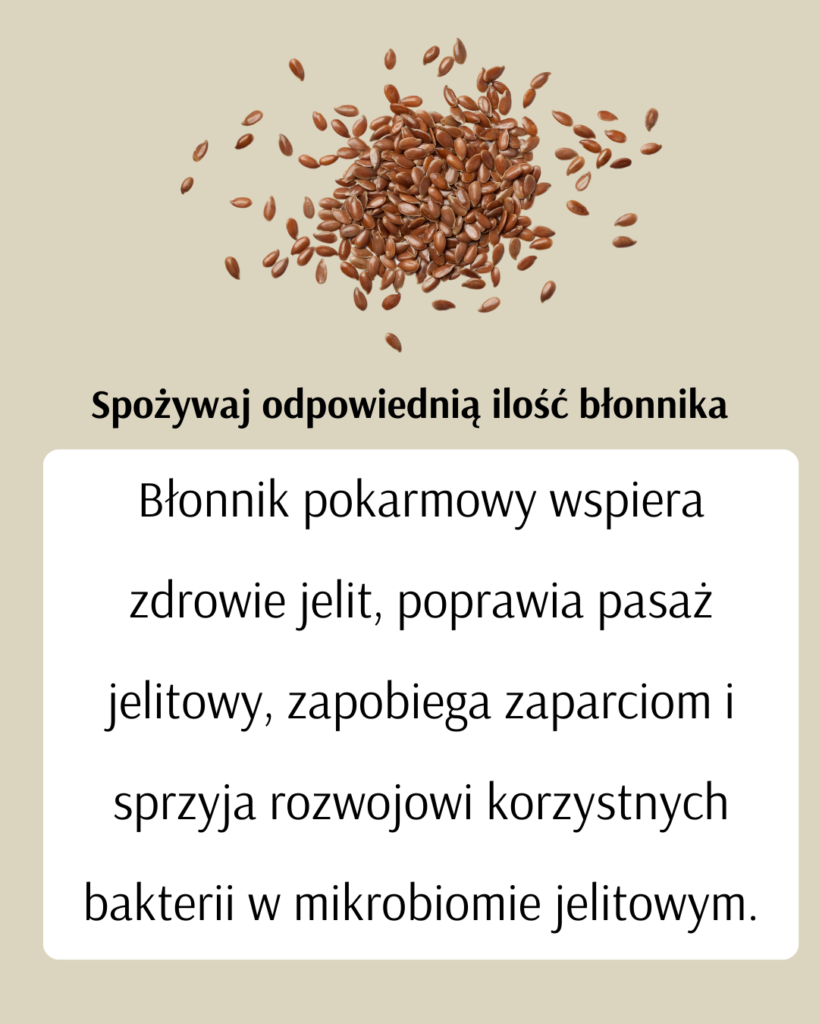 Błonnik pokarmowy wspiera zdrowie jelit, poprawia pasaż jelitowy i zapobiega zaparciom. Znajdziesz go w pełnoziarnistych produktach, warzywach, owocach i nasionach. Warto dążyć do spożywania ok. 25-35 g błonnika dziennie.