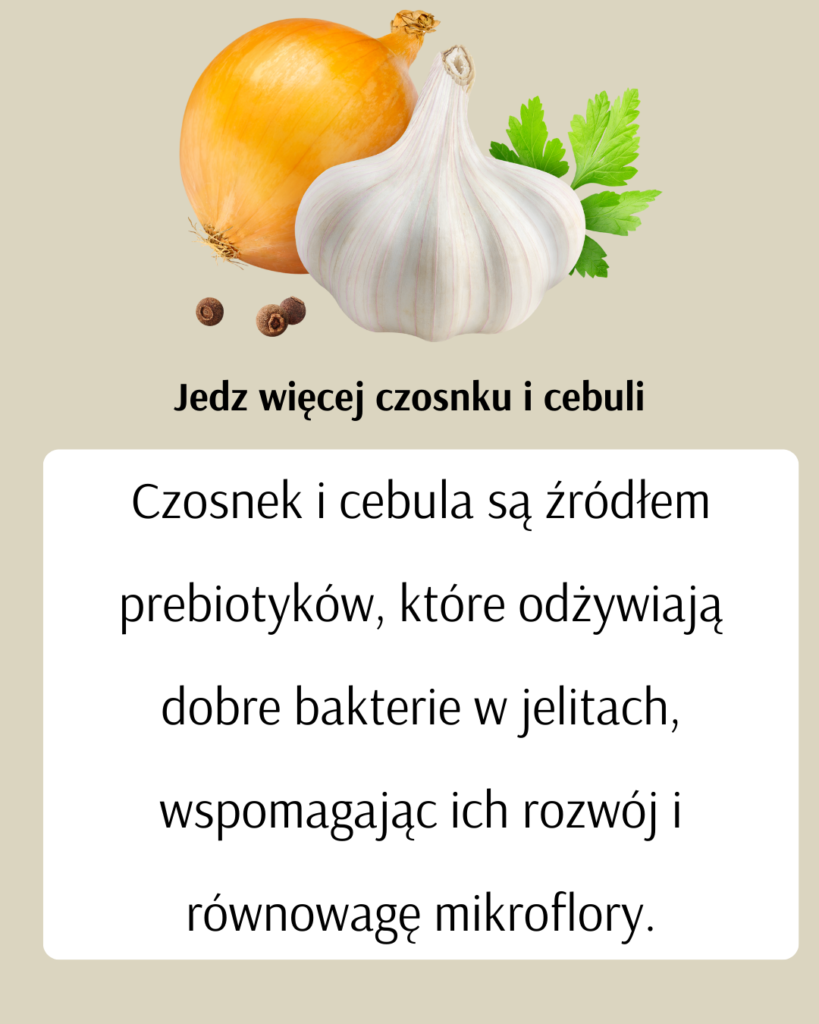 Te naturalne prebiotyki dostarczają pożywki dla dobrych bakterii w jelitach, wspierając równowagę mikrobioty. Warto dodawać je do sałatek, sosów czy zup.