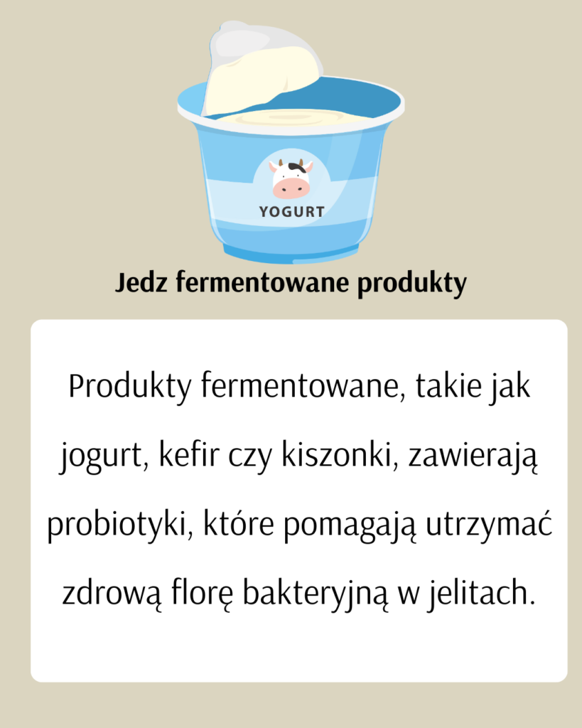 Jogurt, kefir, kiszonki – wszystkie te produkty zawierają probiotyki, które wspierają zdrową florę bakteryjną jelit. Regularne ich spożywanie może poprawić odporność i trawienie.