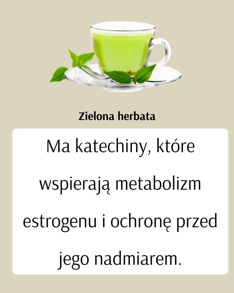 Zielona herbata – Zawiera katechiny, które wspierają metabolizm estrogenu i chronią organizm przed jego nadmiarem.