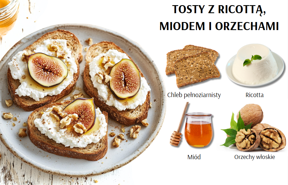 Tosty z ricottą, miodem i orzechami to prosty, a zarazem wyrafinowany pomysł na szybkie śniadanie lub deser. Kremowa ricotta, słodycz miodu i chrupiące orzechy tworzą idealne połączenie, które zachwyci nawet najbardziej wymagające podniebienia!