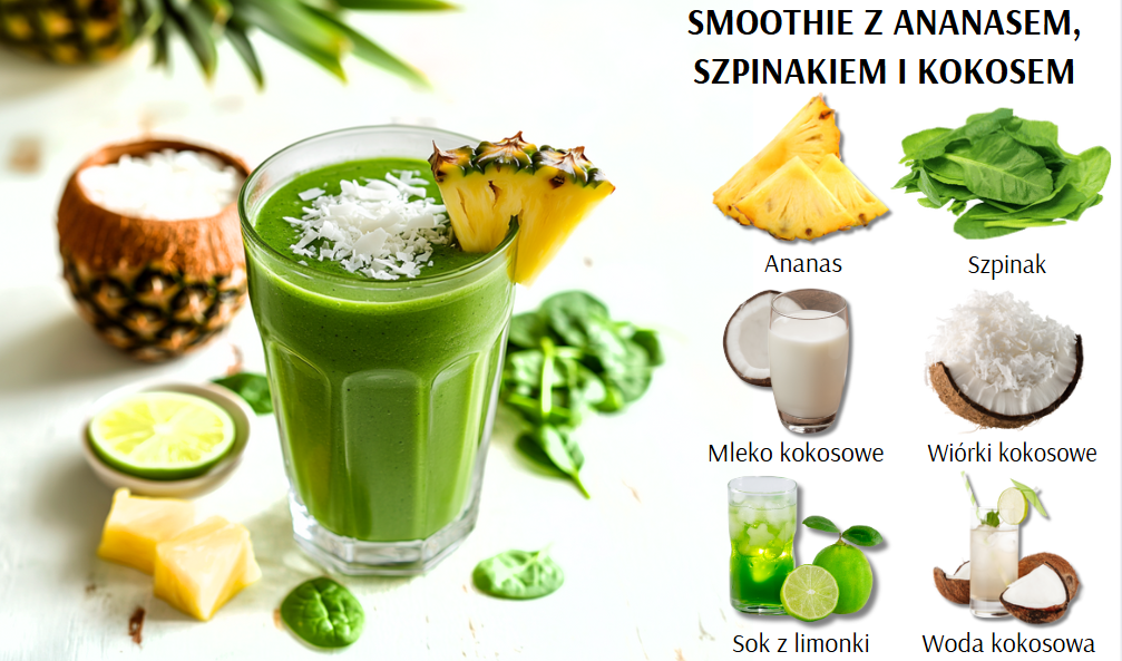 10.Smoothie z Ananasem, Szpinakiem i Kokosem
