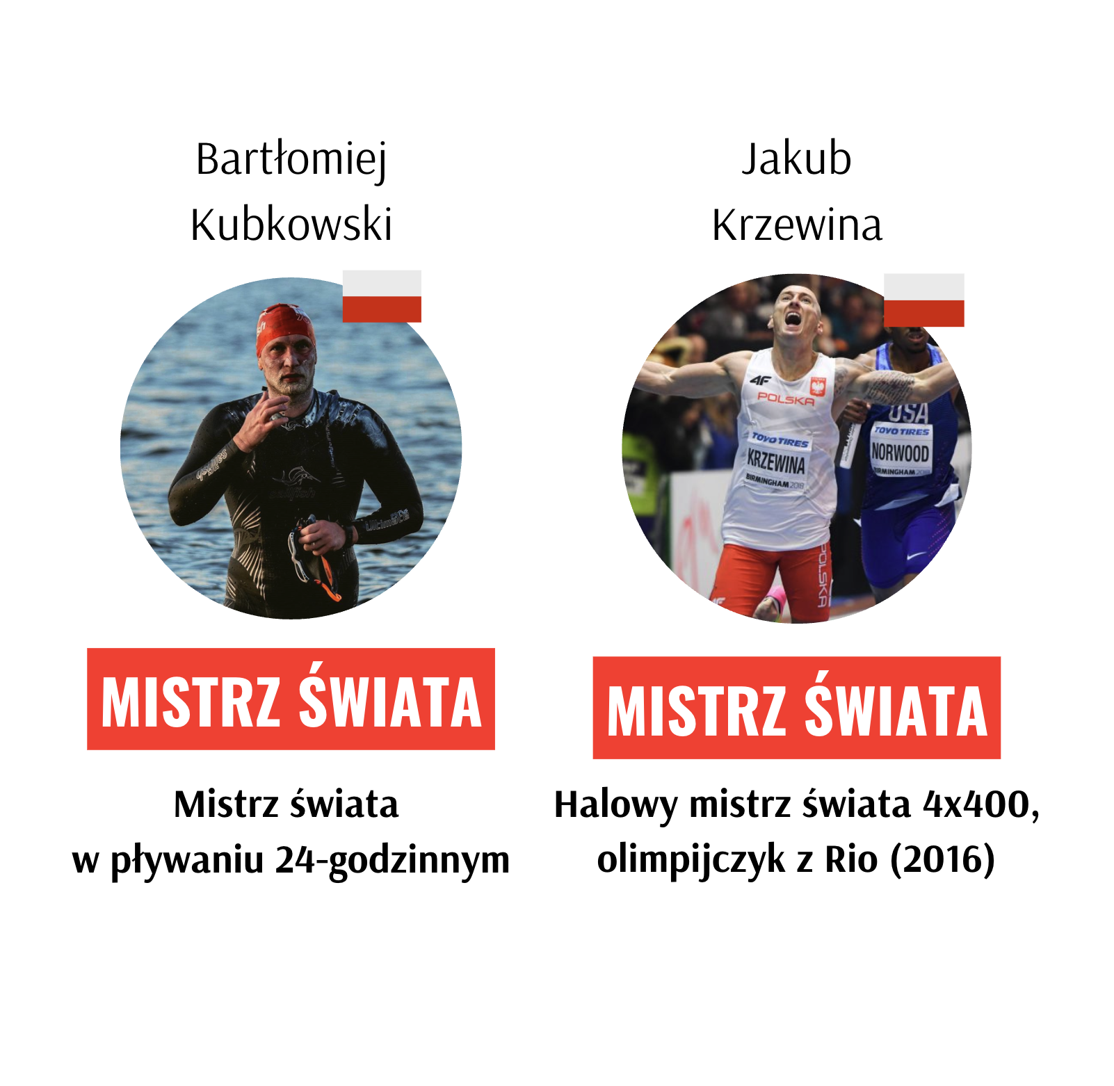 - Współpraca z mistrzami świata: Jakubem Krzewiną (sztafeta 4×400 m) i Bartkiem Kubkowskim (mistrz świata w pływaniu 24h)